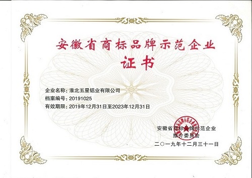 安徽省商標(biāo)品牌示范企業(yè)證書(shū)