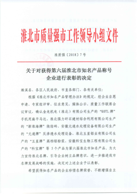 熱烈祝賀我司產(chǎn)品“五星牌”高檔鋁粉漿獲得第六屆淮北市知名產(chǎn)品稱號(hào)!