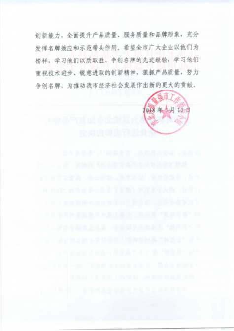 我司將珍惜名牌榮譽(yù)、全面提升產(chǎn)品質(zhì)量、服務(wù)質(zhì)量和品牌形象,充分發(fā)揮名牌效應(yīng)和示范帶頭作用。將一如既往地堅(jiān)持以高質(zhì)量的產(chǎn)品,合理的價(jià)格及優(yōu)良的服務(wù)來(lái)回報(bào)廣大用戶對(duì)我們的支持與信賴。