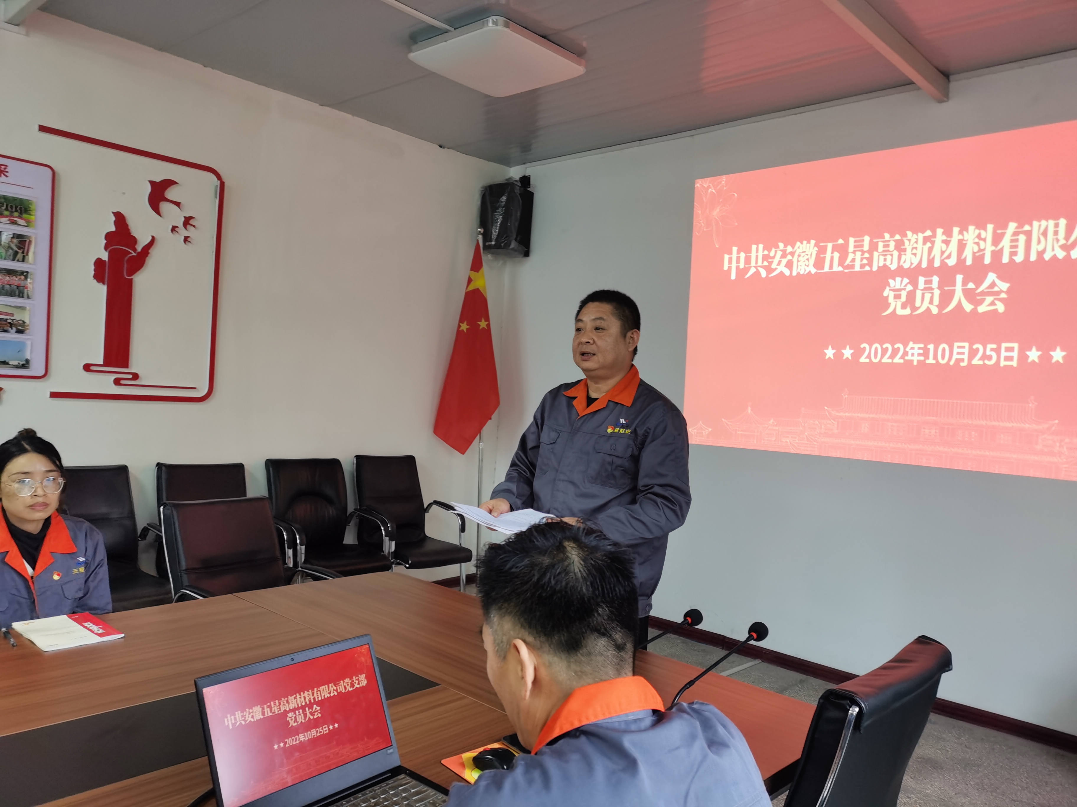 2022年10月25日上午,中共安徽五星高新材料有限公司黨支部在會(huì)議室召開(kāi)黨員大會(huì),選舉產(chǎn)生新一屆委員會(huì)。