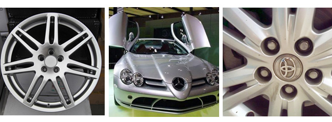 鋁銀漿主要應(yīng)用的塑膠漆在汽車工業(yè)十分常見,目前主要集中在外飾件和內(nèi)飾件。外飾件的涂裝,除了色相要與車身同色且有光澤外,還要提高表面硬度,增強(qiáng)塑料表面抗劃傷性能,更要能適應(yīng)紫外光暴曬等戶外性能。而內(nèi)飾件的涂裝則對漆膜耐候性要求不高,主要是對營造表面金屬質(zhì)感,提高內(nèi)飾件的耐刮擦、防靜電等性能有要求。